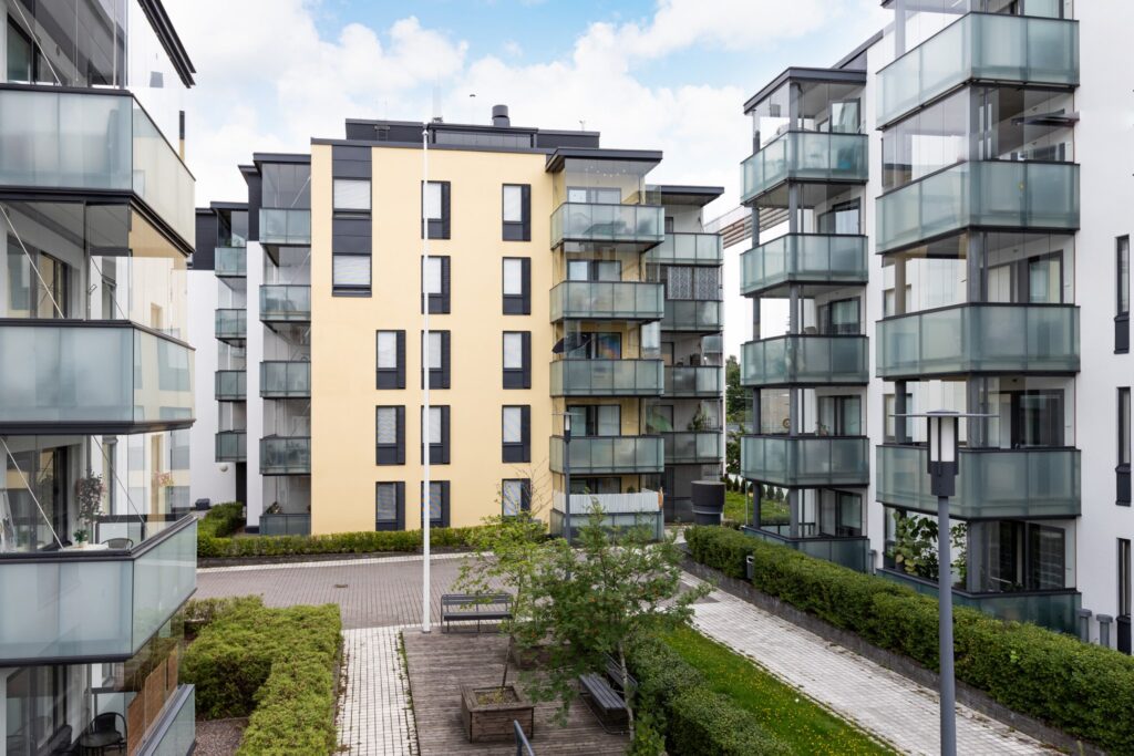 Kerrostalon julkisivujen korjaus ja maalaustyöt Kannelmäessä